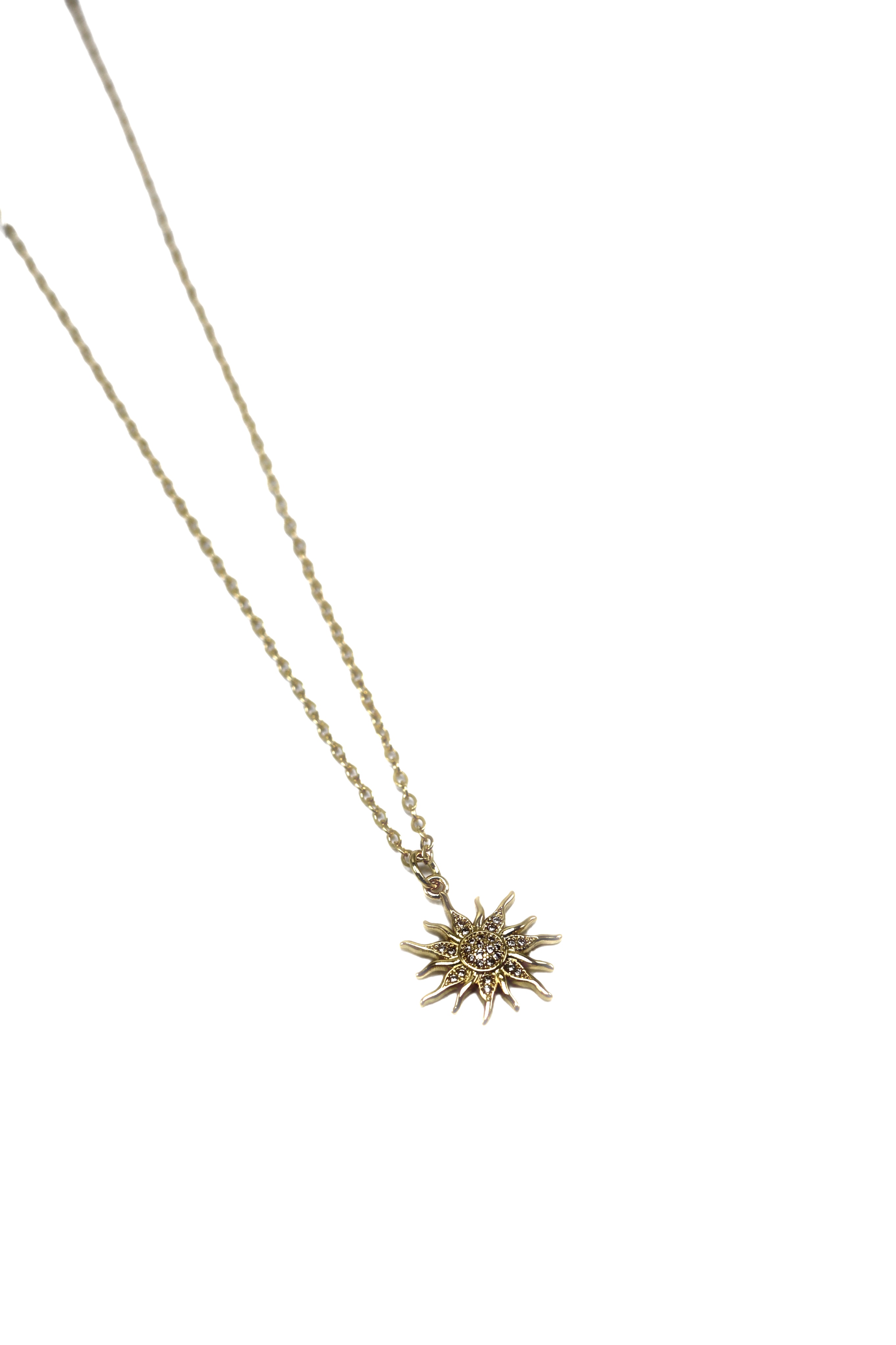 Choose Options Short Gold Chain with CZ Sun MSRP: Was: Now: $130.00 Short Gold Chain with gold CZ sun and gunmetal CZ finding