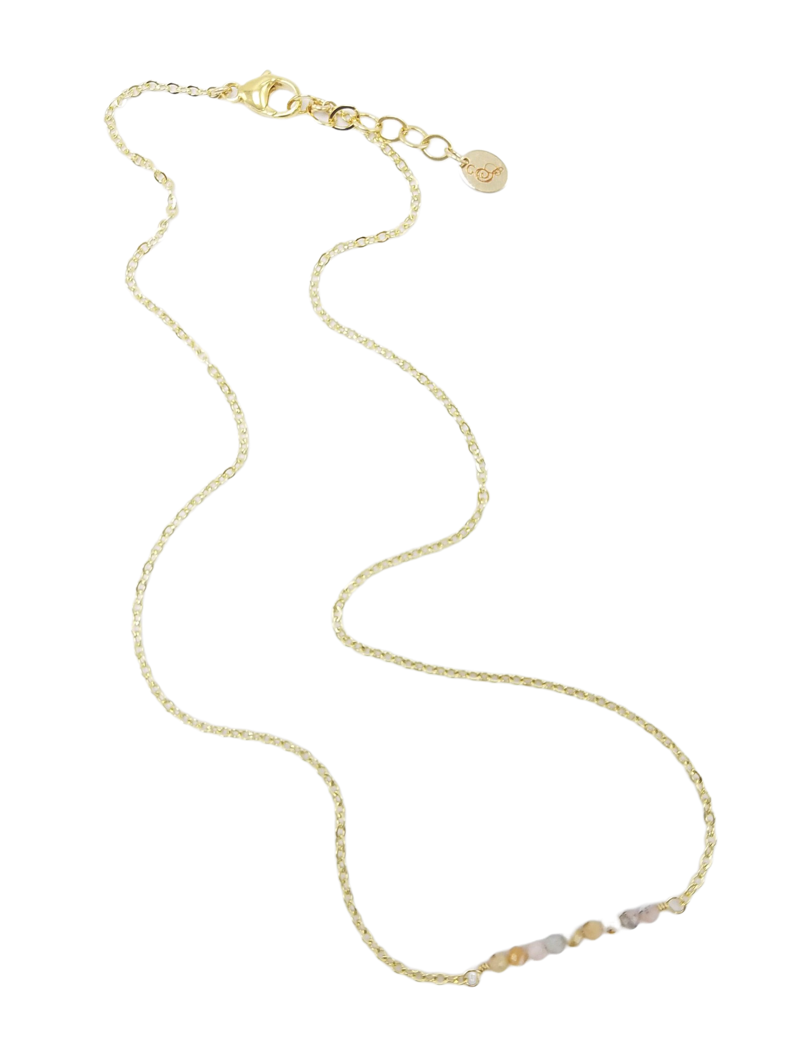 Short delicate necklace with 1" of 2 to 3mm of pink opal on sterling silver, rose gold or gold filled chain with 1" extender.