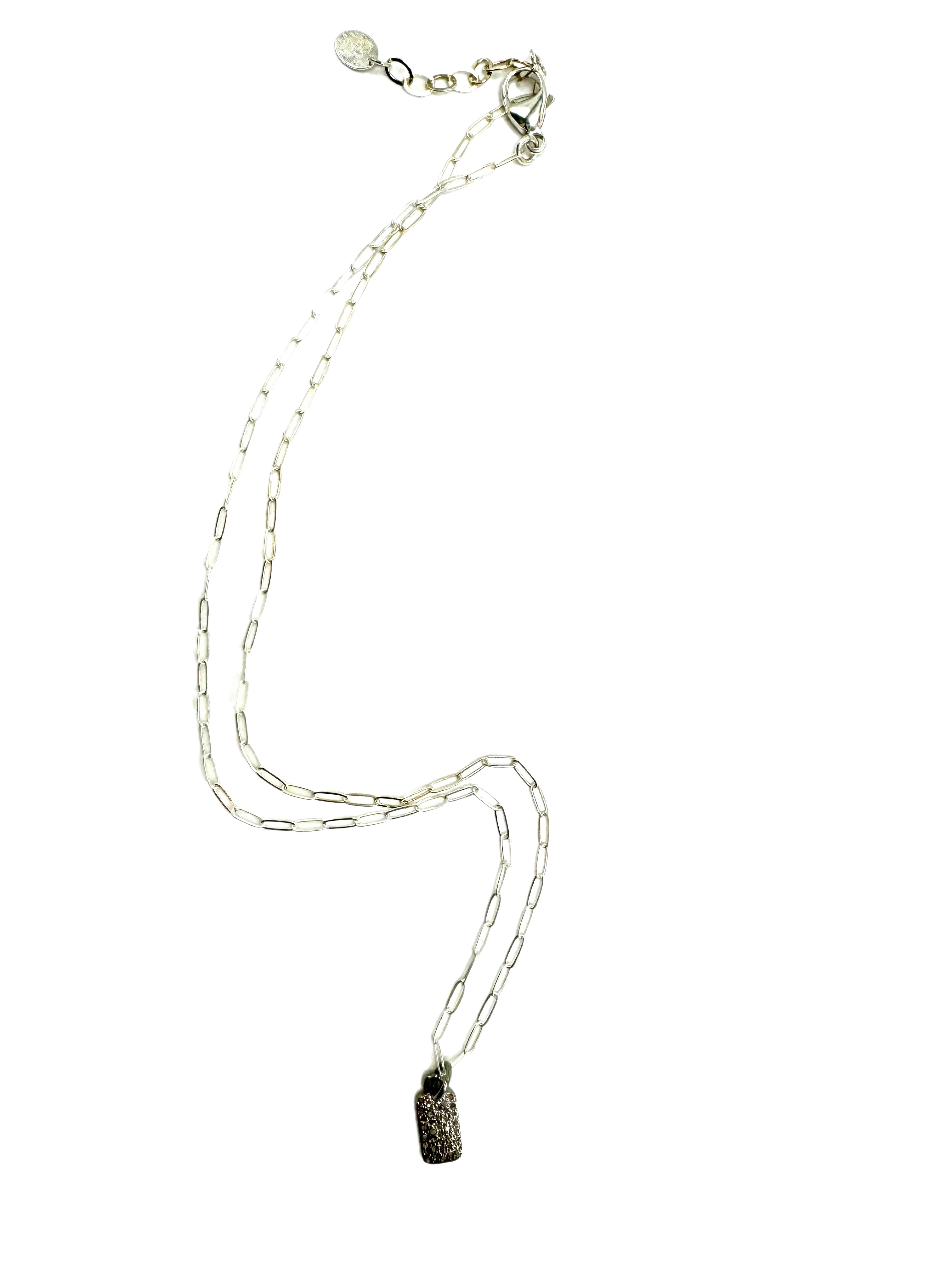Product Description Sterling silver paper clip chain with diamond sterling rectangle tag with 1" extender.