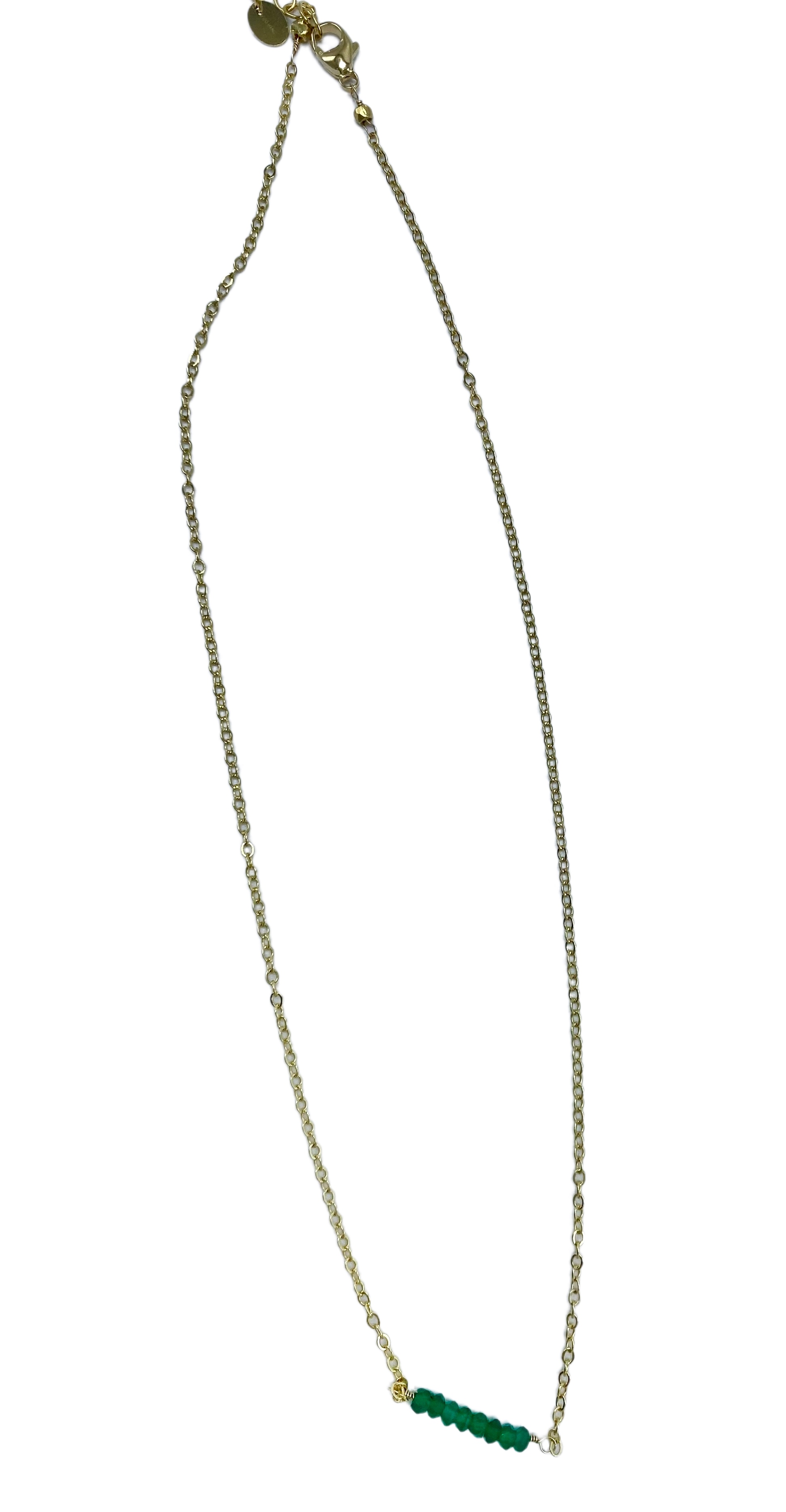 Gold filled and sterling short necklace with green onyx with 1" extender.