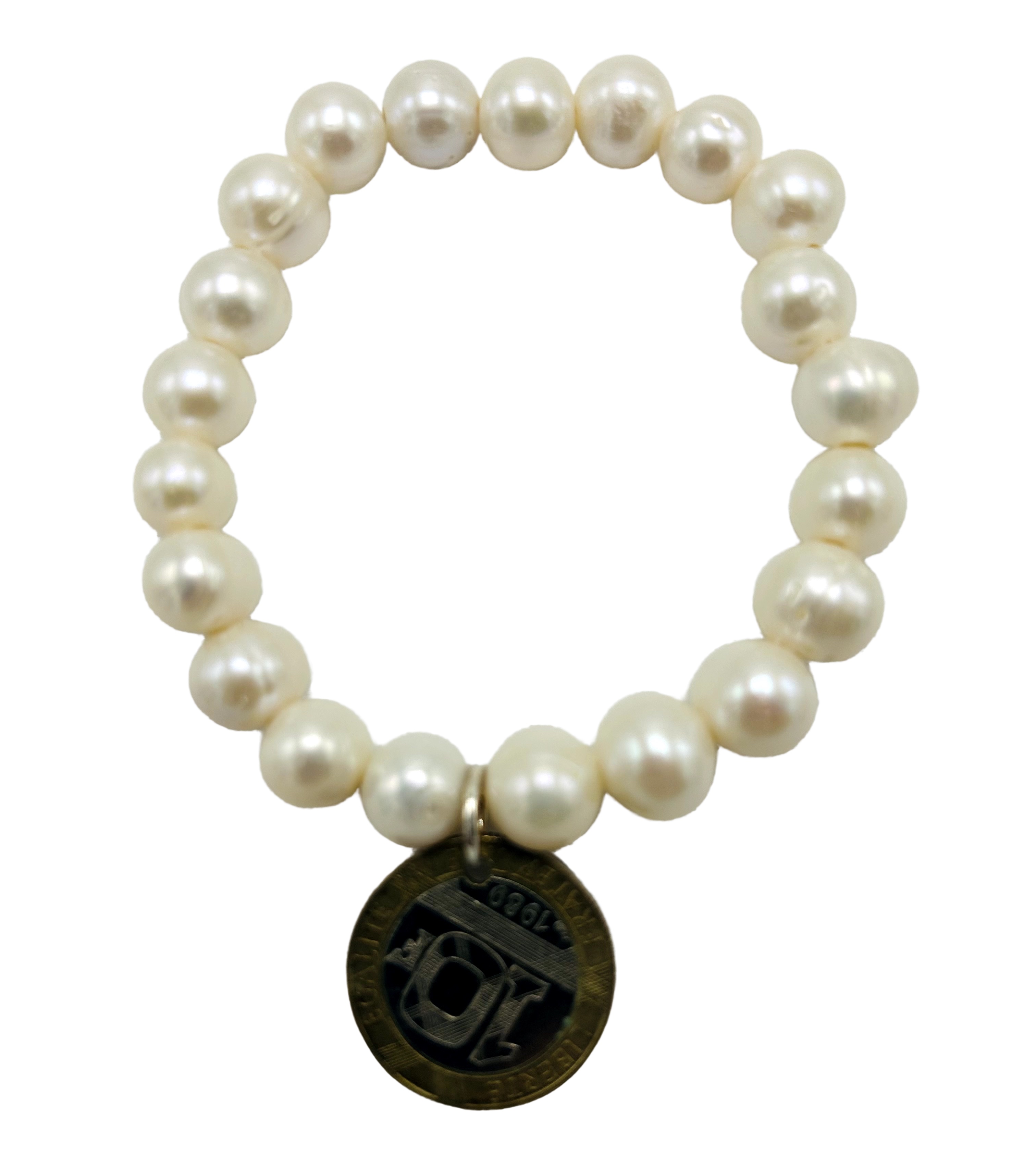 Choose Options Taupe Freshwater Pearls and Vintage Coin Stretch Bracelet MSRP: Was: Now: $40.00 Taupe colored freshwater pearls with vintage silver and gold coin stretch bracelet.