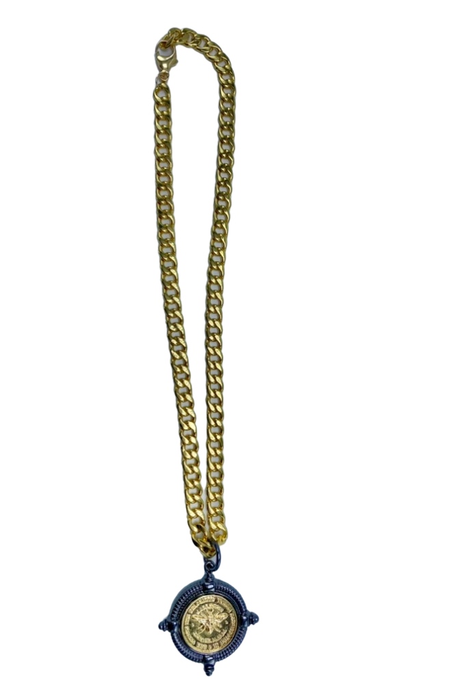 Add to Cart Long Gold Chain with Silver and Gold Bee Coin MSRP: Was: Now: $175.00 36" gold chain with silver and gold bee coin