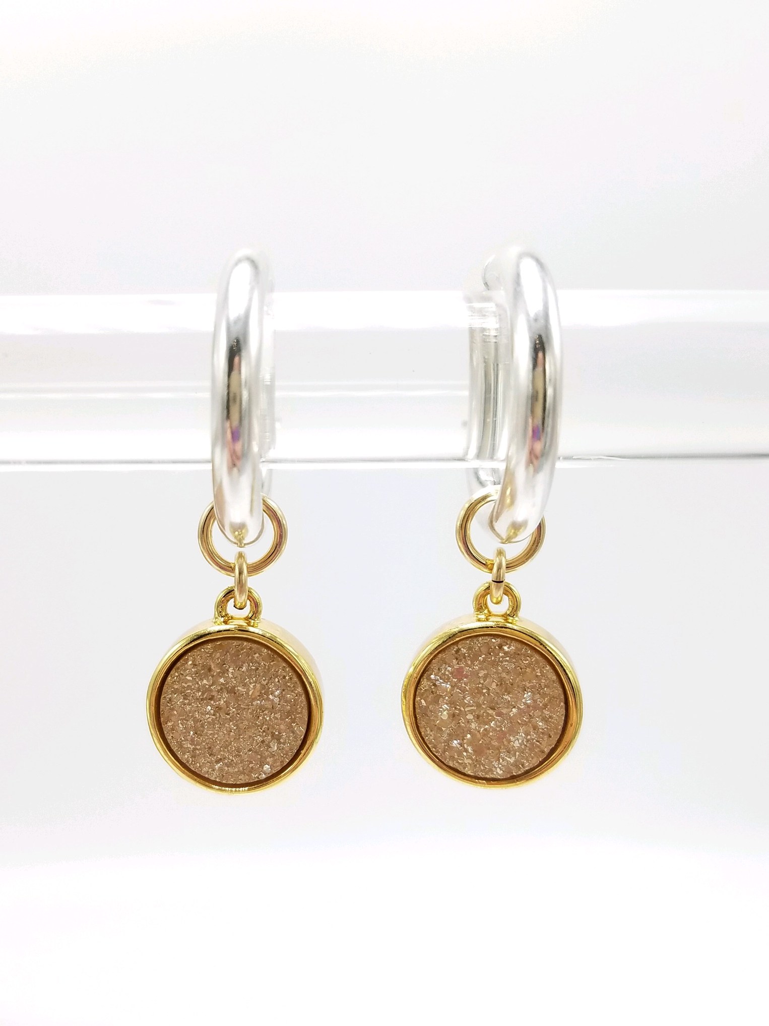 Sale Add to Cart Black Druzy Encased in Silver Charms MSRP: Was: $35.00 Now: $10.00 Silver encased black druzy charms for hoop earrings.