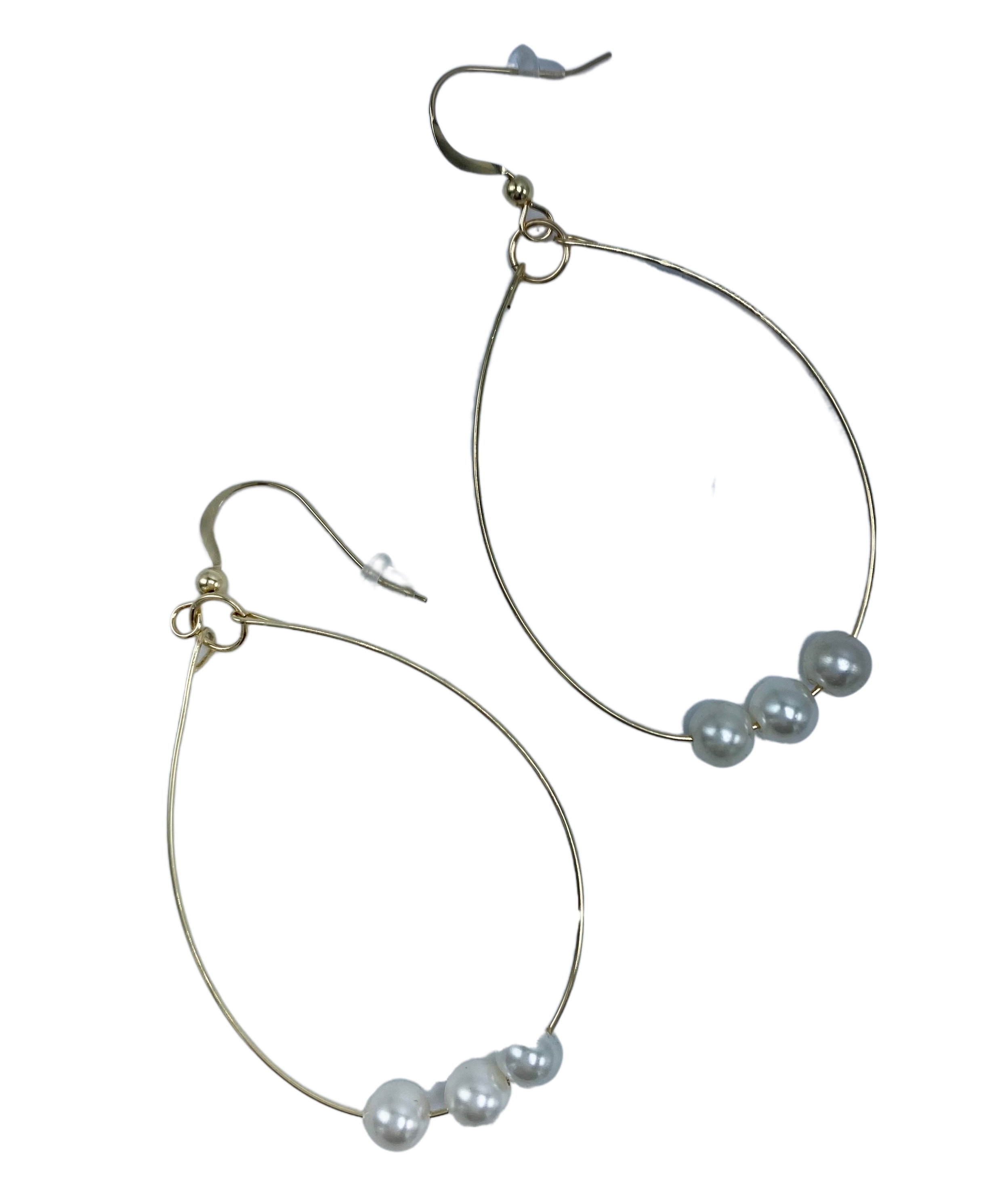 Gold filler or sterling silver signature earring with white freshwater pearls on gold filled or sterling silver french ear wires