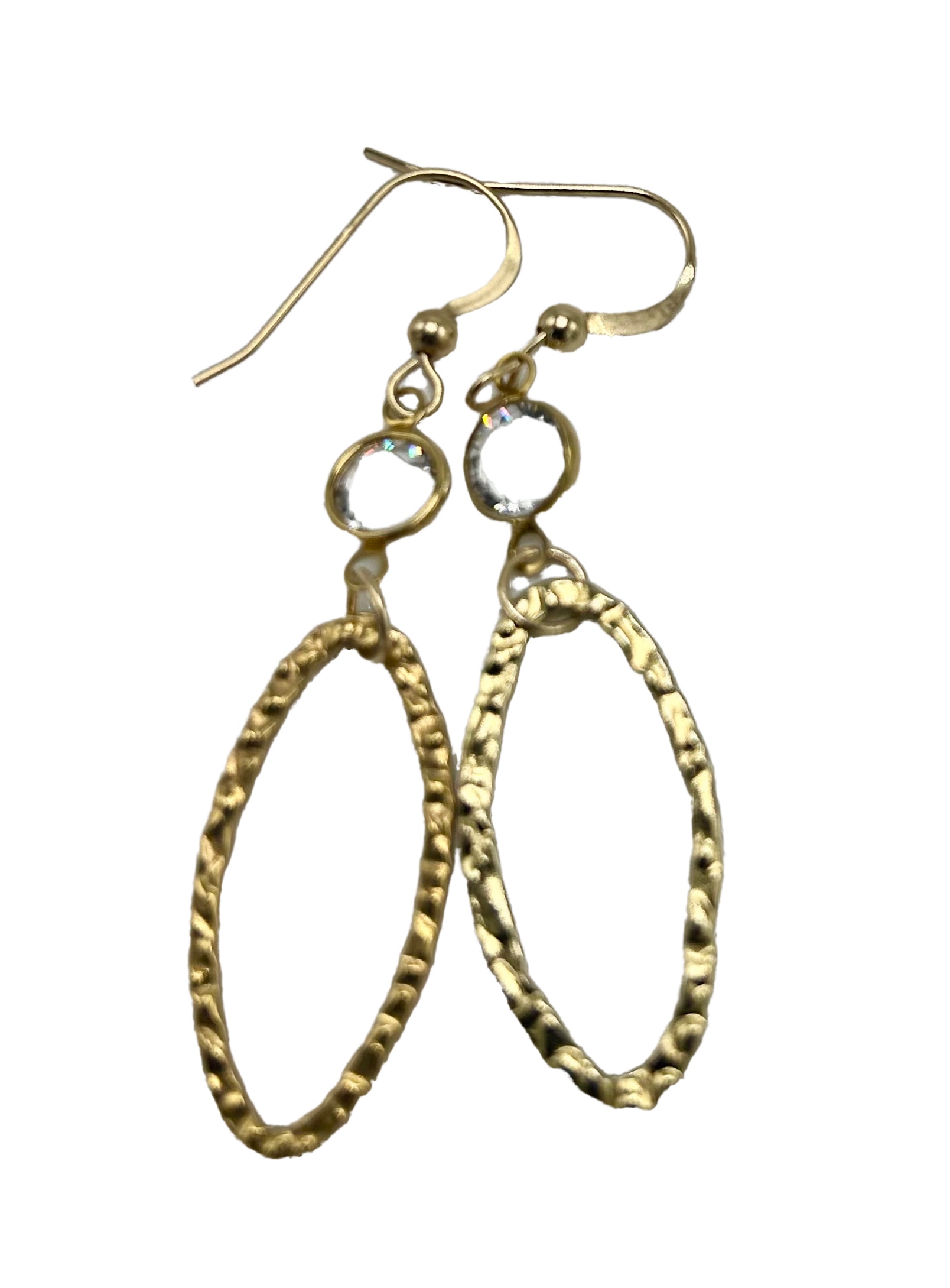 Product Description Hammered gold filled or sterling oval link approximately 19mm with gold encased crystal on gold filled ear wires