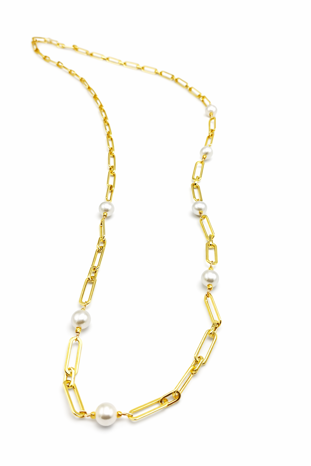 Choose Options Short Gold Filled Paper Clip and Baroque Pearl Necklace MSRP: Was: Now: $350.00 Short gold filled paper clip necklace with large baroque pearls.