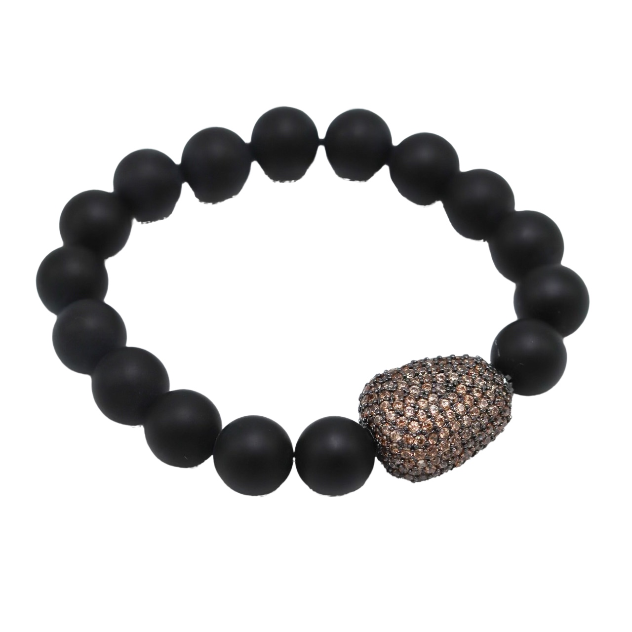 Choose Options Black Onyx and Diamond Stretch Bracelet MSRP: Was: Now: $120.00 10mm black onyx with three row diamond rondel on stretch.