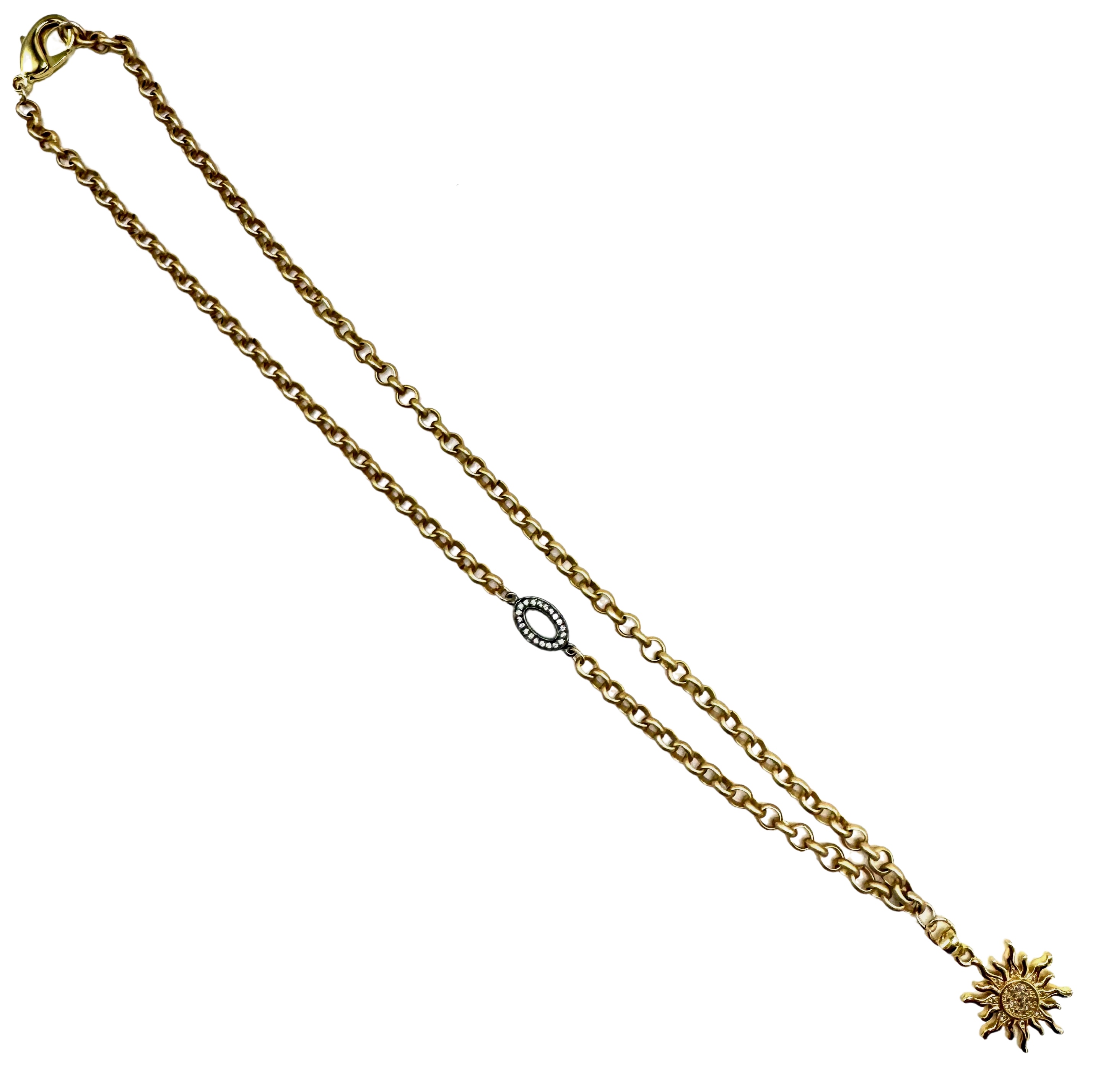 Choose Options CZ Sun on Gold Filled and Sterling Cube Chain MSRP: Was: Now: $125.00 Gold filled and sterling cube chain with gold and CZ sun with 1" extender.