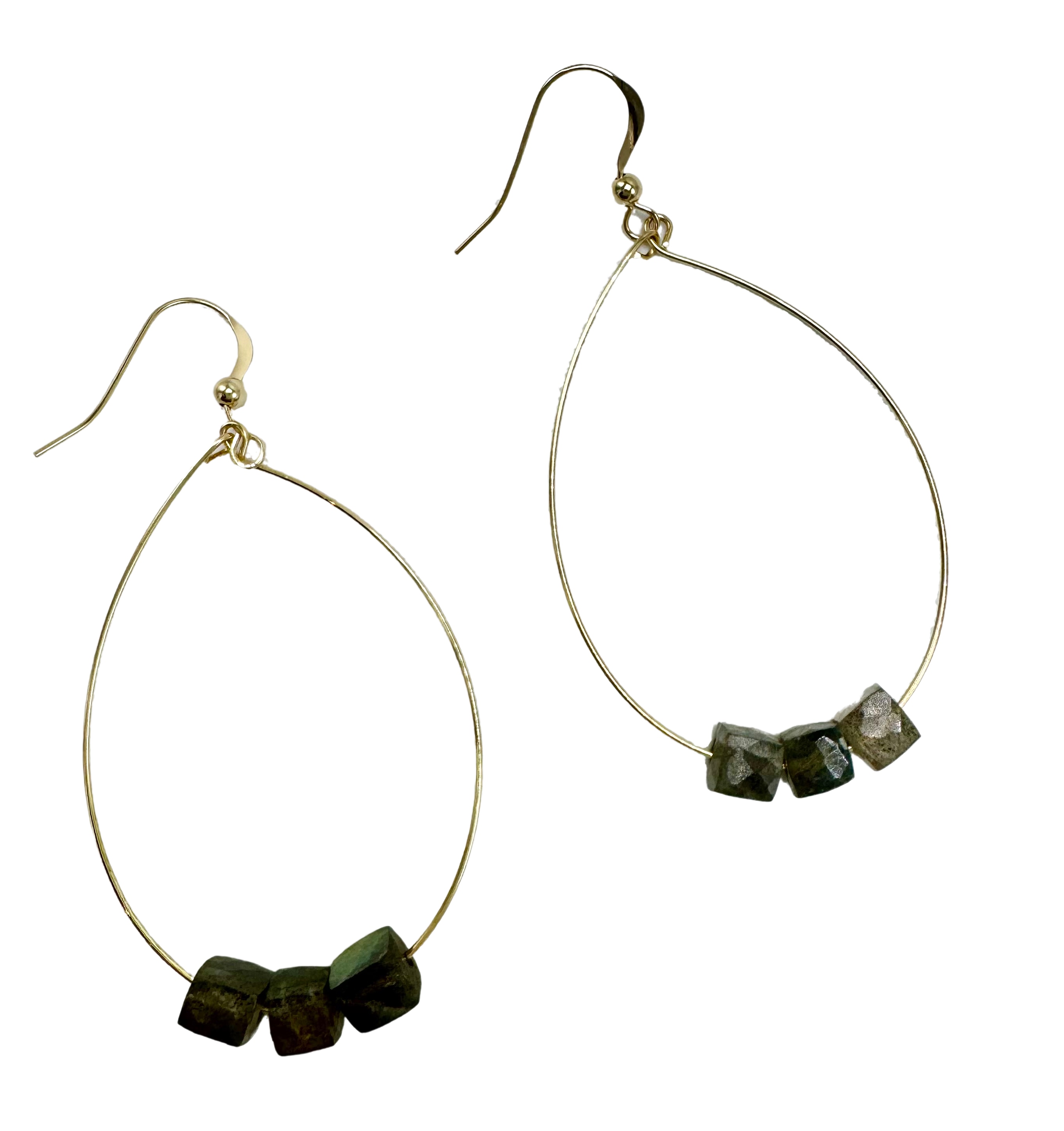 Sterling silver or gold filled hand formed earwigs with 3 labradorite cubes on gold filled or sterling french ear wires