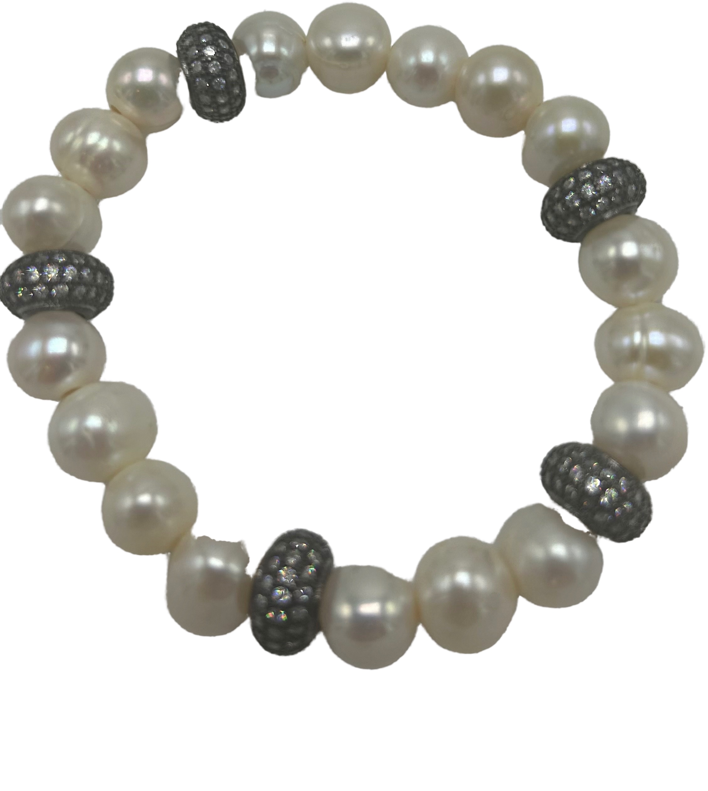 Choose Options Freshwater Pearl and Diamond Rondel Stretch Bracelet MSRP: Was: Now: $125.00 10mm white freshwater pearls with sterling silver and diamond rondel stretch bracelet