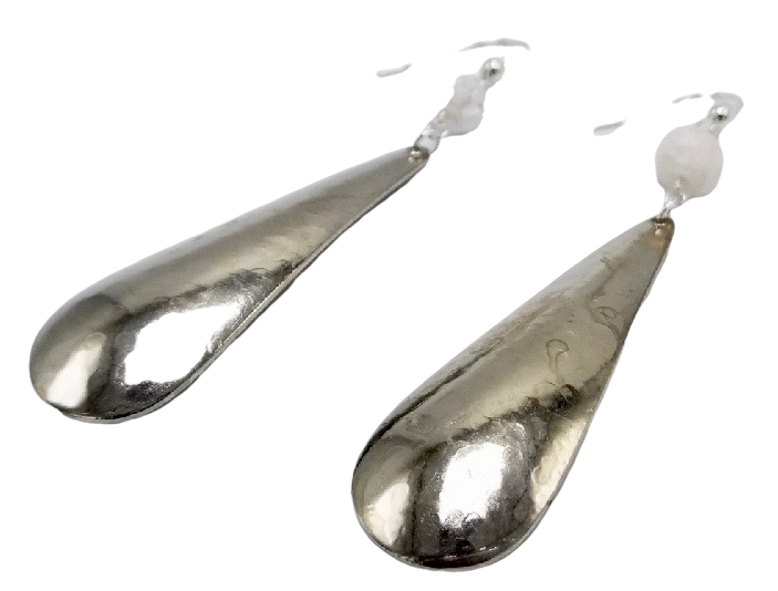 Product Description White faceted moonstone and hammered silver drop 3" long on sterling silver french ear wires.